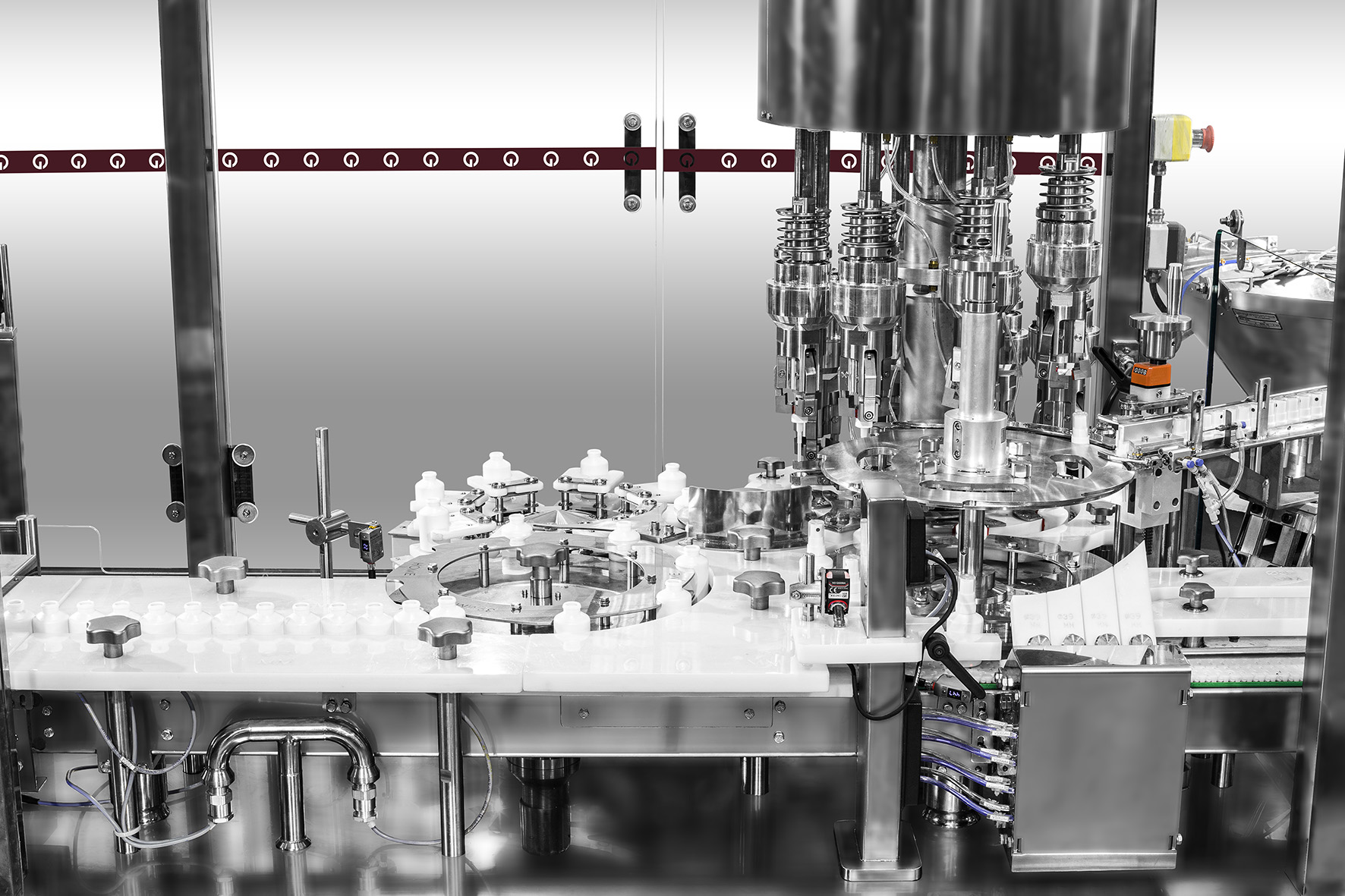 Envase linear e tampagem integrada: precisão e uniformidade em cada frasco.